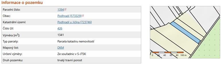 Jedná se o pozemky v k.ú. Podhradí u Jičína, okr. Jičín. Pozemek není v terénu blíže ohraničený a nachází se v lánu. Pozemek je veden v katastru nemovitostí jako trvalý travní porost. K pozemku je přístup přes pozemek parc. č. 1390, který je ve vlastnictví obce Podhradí.