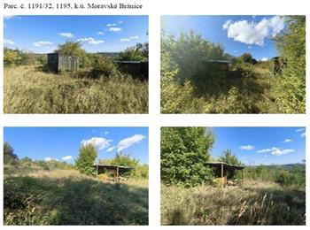 Parc. č. 1191/32, 1195, k.ú. Moravské Bránice Pozemek parc. č. 1191/32 o výměře 354 m2 je v katastru nemovitostí evidovánjako lesní pozemek. Pozemek plní funkci lesa. Na pozemku se nachází akátovýlesní porost, stáří 71 roků.  Dleúzemního plánu obce je pozemek regulován jako plochy lesní “NL“.  Pozemek parc. č. 1195 o výměře 2042 m2 je v katastru nemovitostí evidovánjako orná půda. Pozemek je využíván jako rekreační zahrada, patrně delší dobuneudržovaná, nesečená. Na pozemku se nacházejí náletová trvalé porosty bezvýznamné hodnoty a dvě maringotky ve velmi špatném stavu. Inženýrské sítě jsoumimo dosah. Přístup je řešen po nezpevněné komunikaci, parkování je možné napozemku. Pozemek se nachází v okrajové části obce Moravské Bránice, asi 1 kmseverozápadně od centra obce. V okolí se nenachází žádná zástavba, vzdálenějijsou rekreační objekty.  Dle územního plánu obce je pozemek regulován jako plochy pro rodinnourekreaci „RI“.  Pozemky na sebe vzájemněnavazují.