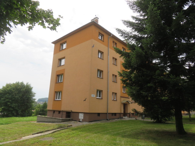Bytová jednotka se nachází v bytovém domě zděné konstrukce se čtyřmi vchody a čtyřmi čísly popisnými. Dům je pravděpodobně založen na základových roštech. Budova má 4 NP, kde se nacházejí jednotky a 1 PP, ve kterém jsou sklepy a společné prostory. V budově není výtah. V budově je celkem 32 jednotek (8 jednotek v každém vchodě). Střecha budovy je valbová s krytinou z tašek. Stavebnětechnický stav objektu je dobrý. Stáří budovy je cca 65 let. Fasáda budovy je zateplená. Přístup k nemovité věci je po místní zpevněné komunikaci s chodníkem. Parkování je omezené v okolí domu.