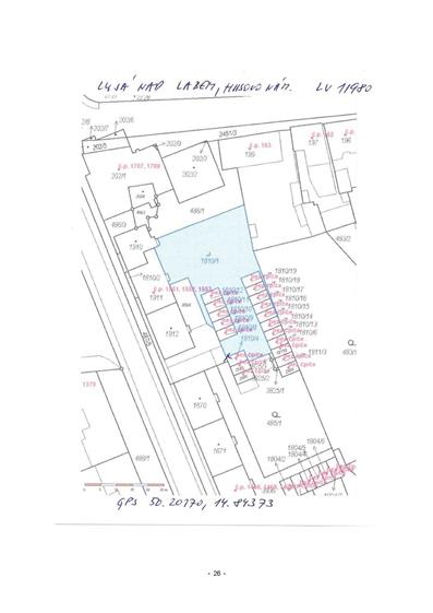 Oceňovaná nemovitá věc, pozemek, se nachází v blízkosti Husova náměstí za domy č.p. 1551,1552, 1553 a č.p. 1707 a 1709.