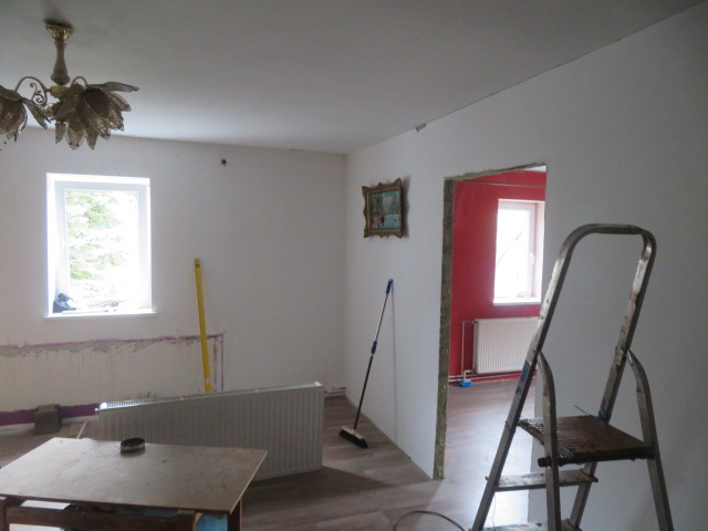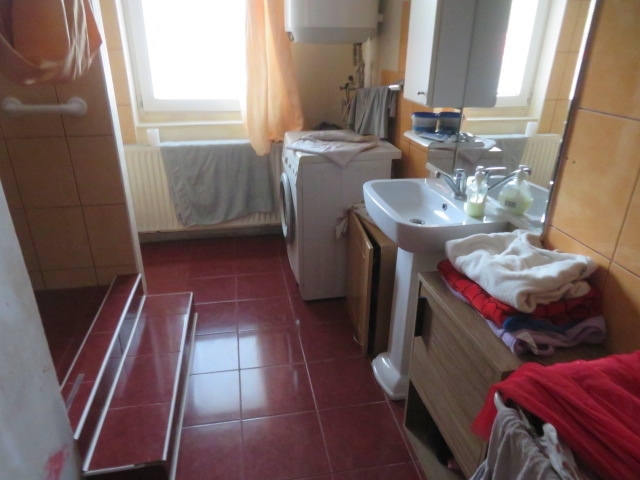V rodinném domě se nachází 4 obytné prostory: 1. NP: 1+1 a 4+1; 2. NP: 2+1 a 3+kk. Vnitřní dveře jsou dřevěné plné nebo dřevěné prosklené. Na podlahách v místnostech je keramická dlažba nebo plovoucí podlaha. Obklady jsou keramické. Interiéry jsou částečně v zanedbaném stavu vhodné ke kompletní rekonstrukci (1. NP) a částečně prochází rekonstrukcí (2. NP).Z IS je objekt napojen na přípojku elektřiny, vodovodu a plynovodu. Odpady jsou svedeny do septiku. Přípojky nebylo možné ověřit. Vytápění domu zajišťuje kotel na tuhá paliva. Ohřev teplé vody zajišťuje bojler.