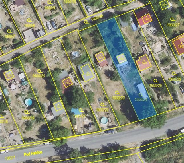 Na pozemku parc. č. 1925 stojí jiná stavba bez č.p/č.e. Pozemek je v katastru nemovitostí veden jako zastavěná plocha a nádvoří o celkové výměře 17 m2. Pozemek parc. č. 1900/24 navazuje na pozemek parc. č. 1925 a tvoří s ním jeden funkční celek přibližně obdélníkového tvaru. V katastru nemovitostí je veden jako zahrada o celkové výměře 550 m2. Pozemky jsou středně svažité, travnaté a neudržované. Pozemky jsou oploceny drátěným plotem. Na pozemcích se nachází porosty a mobilheim.