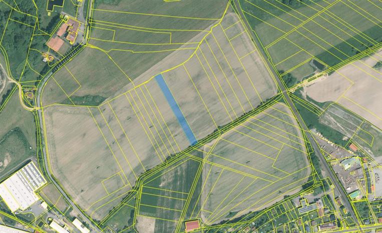 Zemědělský pozemek parc.č. 3576 není v terénu blíže ohraničený a nachází se v lánu. Zemědělský pozemek parc.č. 4020 je na jihovýchodní straně ohraničený nezpevněnou cestou a nachází se v lánu. Na pozemku parc.č. 4046 se nachází koryto místního potoka. Zemědělský pozemek parc.č. 4043 není v terénu blíže ohraničený a nachází se v lánu. Zemědělský pozemek parc.č. 4047 je na západní straně ohraničený korytem místního potoka a nachází se v lánu.