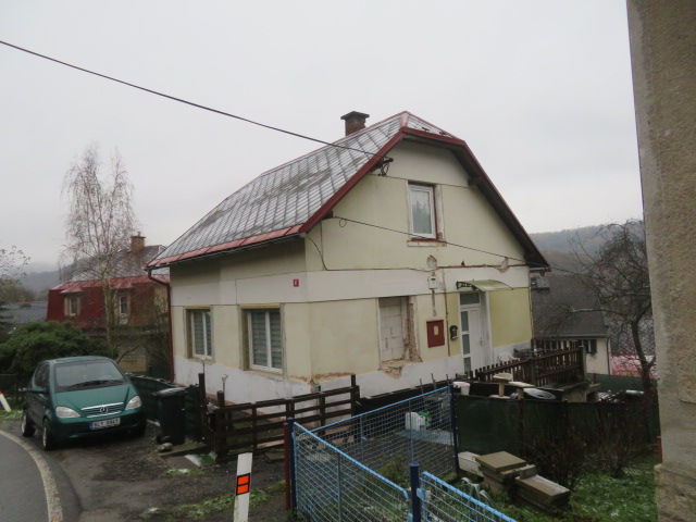 Jedná se o dražbu spoluvlastnického podílu o velikosti id. 1/2 na samostatně stojícím přízemním RD s obytným podkrovím. Budova je pravděpodobně založena na základových pasech. Konstrukce budovy je zděná a její stavebnětechnický stav je odpovídající probíhající rekonstrukci. Fasáda domu není zateplená, nese známky opotřebení a na některých místech opadává. Dům je podsklepený. Střecha budovy je polovalbová s krytinou z osinkocementové šablony. Okna domu jsou plastová. Vchodové dveře domu jsou plastové prosklené. K domu patří oplocená zahrada. Oplocení je dřevěné a drátěné. Přístup k nemovité věci je po místní zpevněné komunikaci. Z IS je nemovitá věc napojena na přípojku elektřiny.