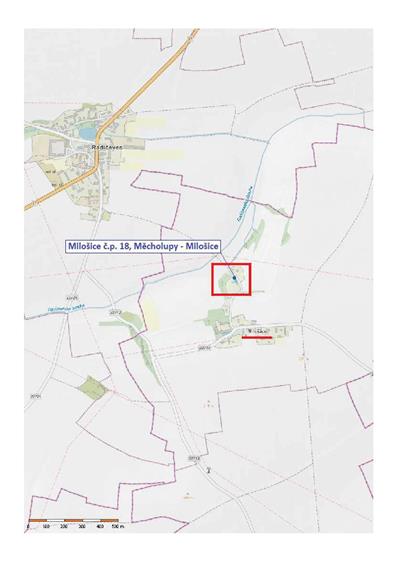 Jedná se o 1/8 rodinného domu s pozemkem a příslušenstvím v obci Milošice, část obce Měcholupy, okres Louny. Dům je zděný, samostatně stojící, patrový s volným půdním prostorem. K domu patří oplocená zahrada a vestavěná garáž s plechovými vraty. Oplocení je drátěné. Z inženýrských sítí je nemovitá věc napojena na přípojku elektřiny a vodovodu. Odpady jsou svedeny do jímky. Přístup k nemovité věci je po místní zpevněné komunikaci.