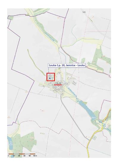 Jedná se o 1/4 pozemku v obci Louka, část obce Jemnice, okres Třebíč. Pozemek je travnatý, tvaru úzkého pásu a nachází se v severozápadní zastavěné části obce Louka. Na pozemku se nachází nezpevněná cesta a část hospodářské stavby, která není předmětem ocenění. V územním plánu je pozemek vedený jako plocha smíšená obytná venkovská. K pozemku vede nezpevněná cesta nacházející se na pozemku parc. č. 377/1, který je ve vlastnictví města Jemnice.
